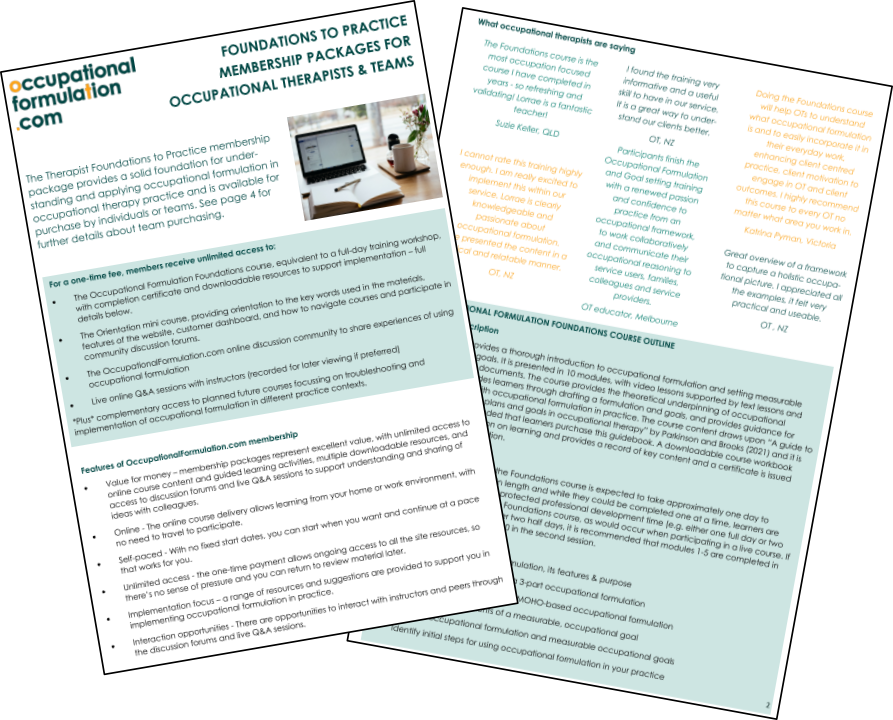 This pdf brochure provides detailed information about the Foundations to Practice Membership packages available for individual occupational therapists and teams.